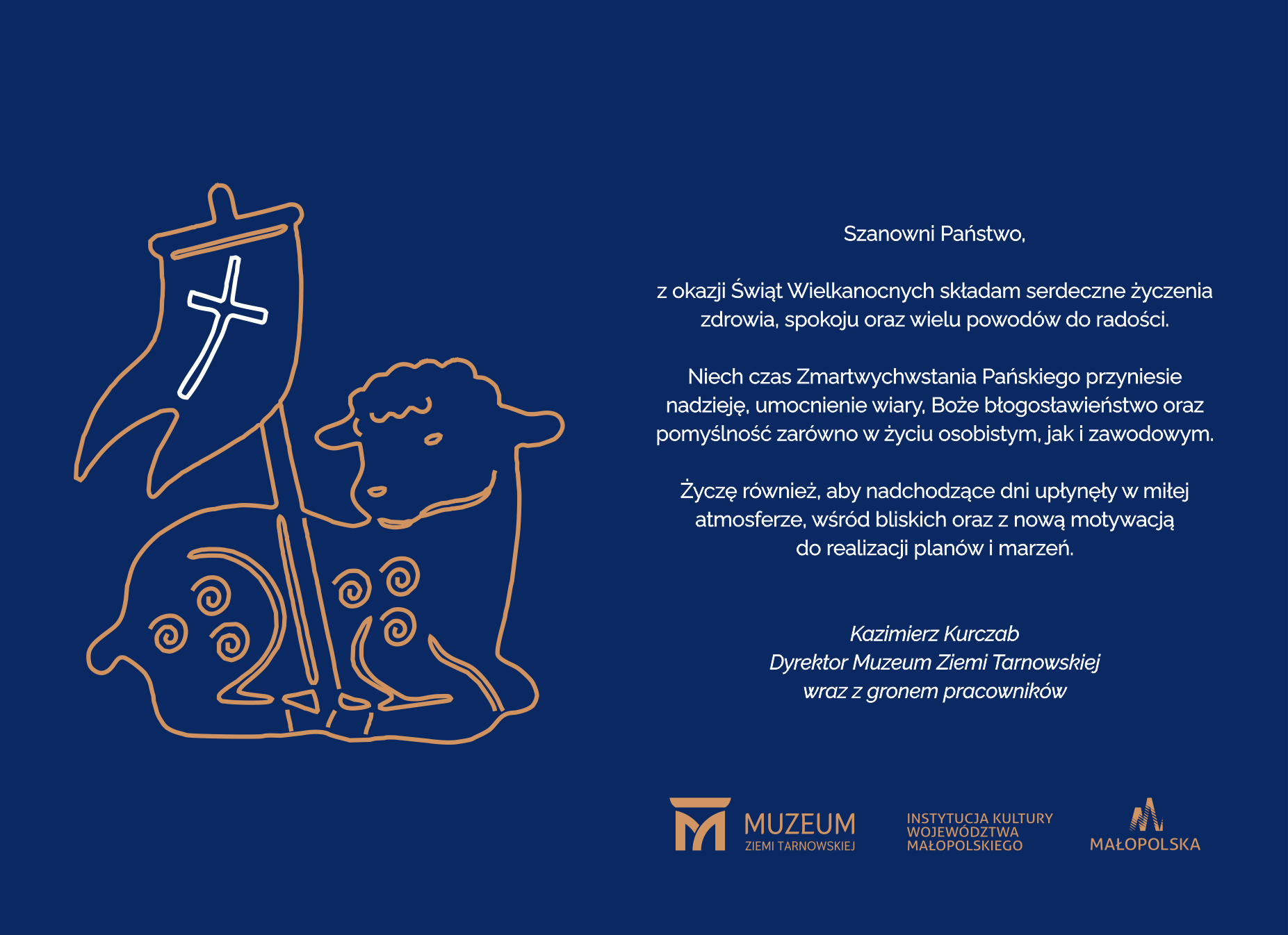 złote logo muzeum ziemi tarnowskiej na granatowym tle